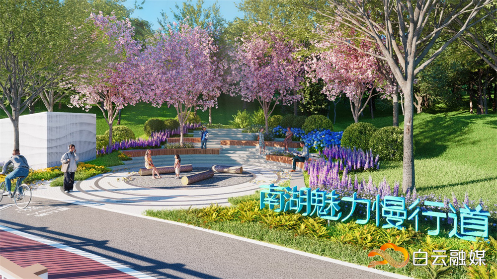 更重要的是,环南湖慢行系统不仅是物理空间的连接,更是区域文旅资源的整合纽带。该项目将联动白云山、六片山等自然山水资源,打通环湖游径与郊野徒步线路,构建“山水—湖泊—城市”一体化的生态文旅廊道。未来,随着慢行系统建成,南湖片区将形成以湖为核心、多业态协同发展的泛南湖文旅目的地,有效带动滨水商业、康养服务、文化体验等产业落地。