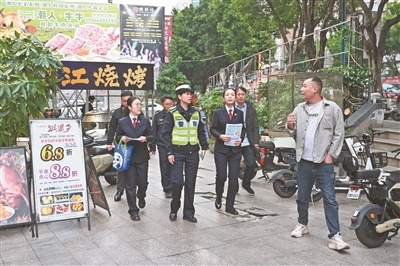 检察官联合社区工作人员、交警等入商户宣传拒绝酒驾。