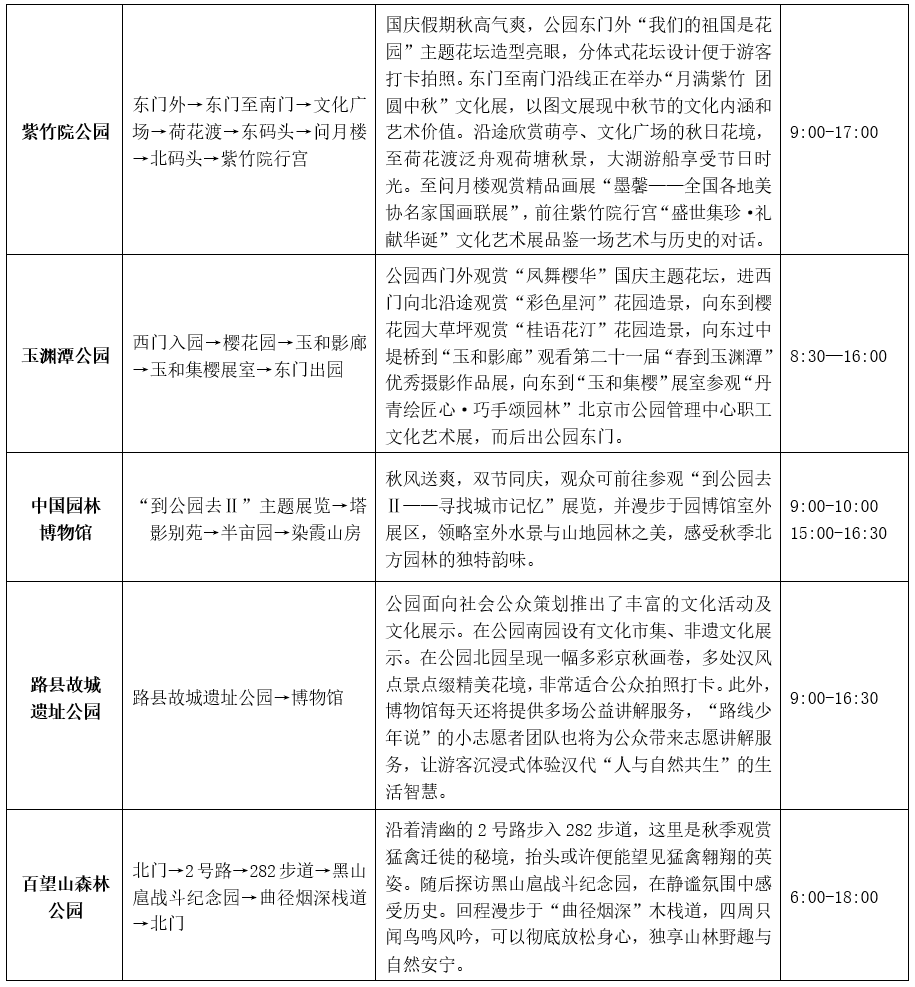 ■ 附:2025年国庆中秋假期市属公园错峰游览路线